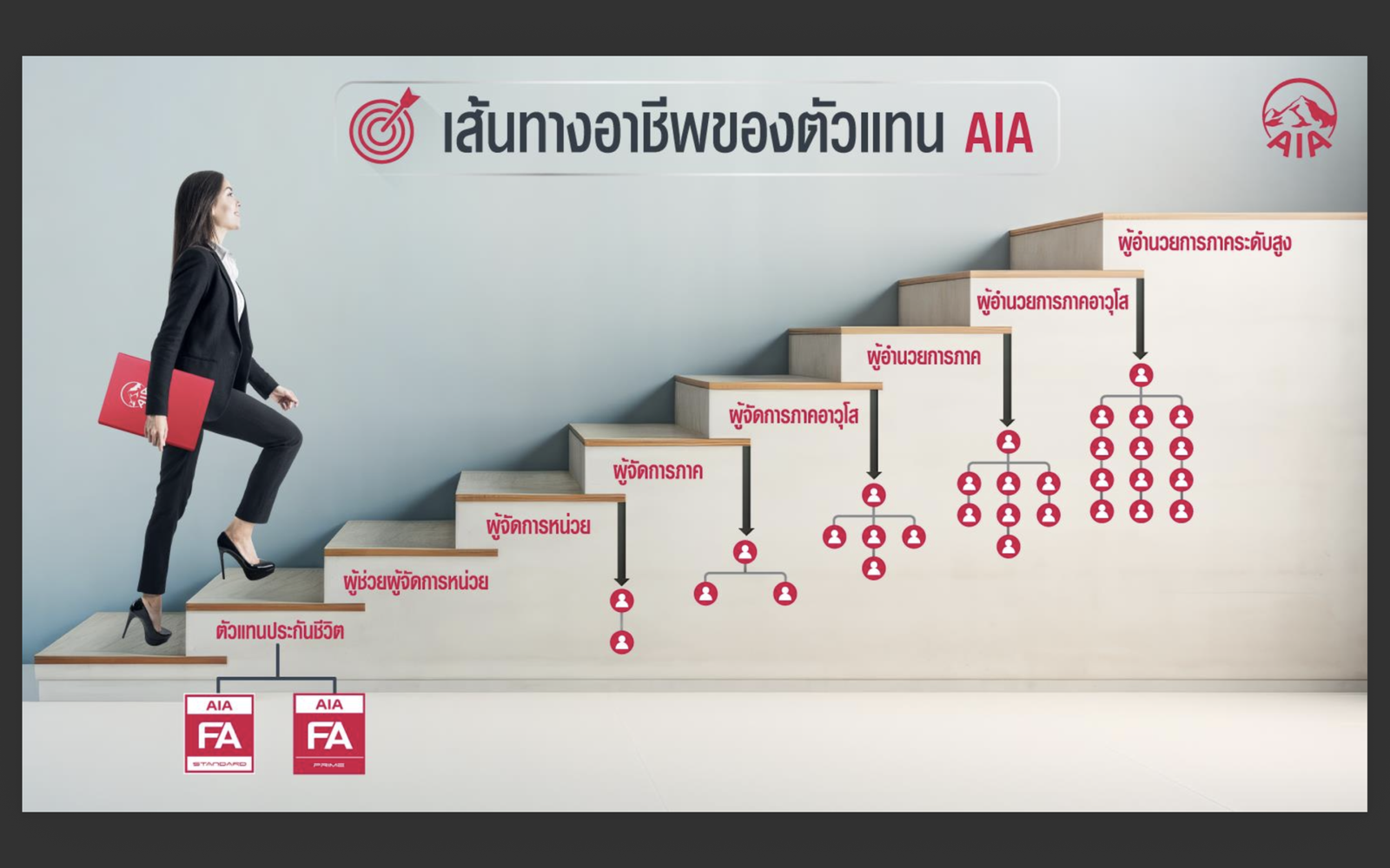 โครงการนี้ไม่ได้เพียงแค่จ่ายเงินโบนัส แต่คือการวาง Career Path หรือเส้นทางอาชีพให้คุณตั้งแต่เริ่มต้นเป็นตัวแทน จนถึงการเป็นผู้อำนวยการภาคระดับสูง (Executive District Director)