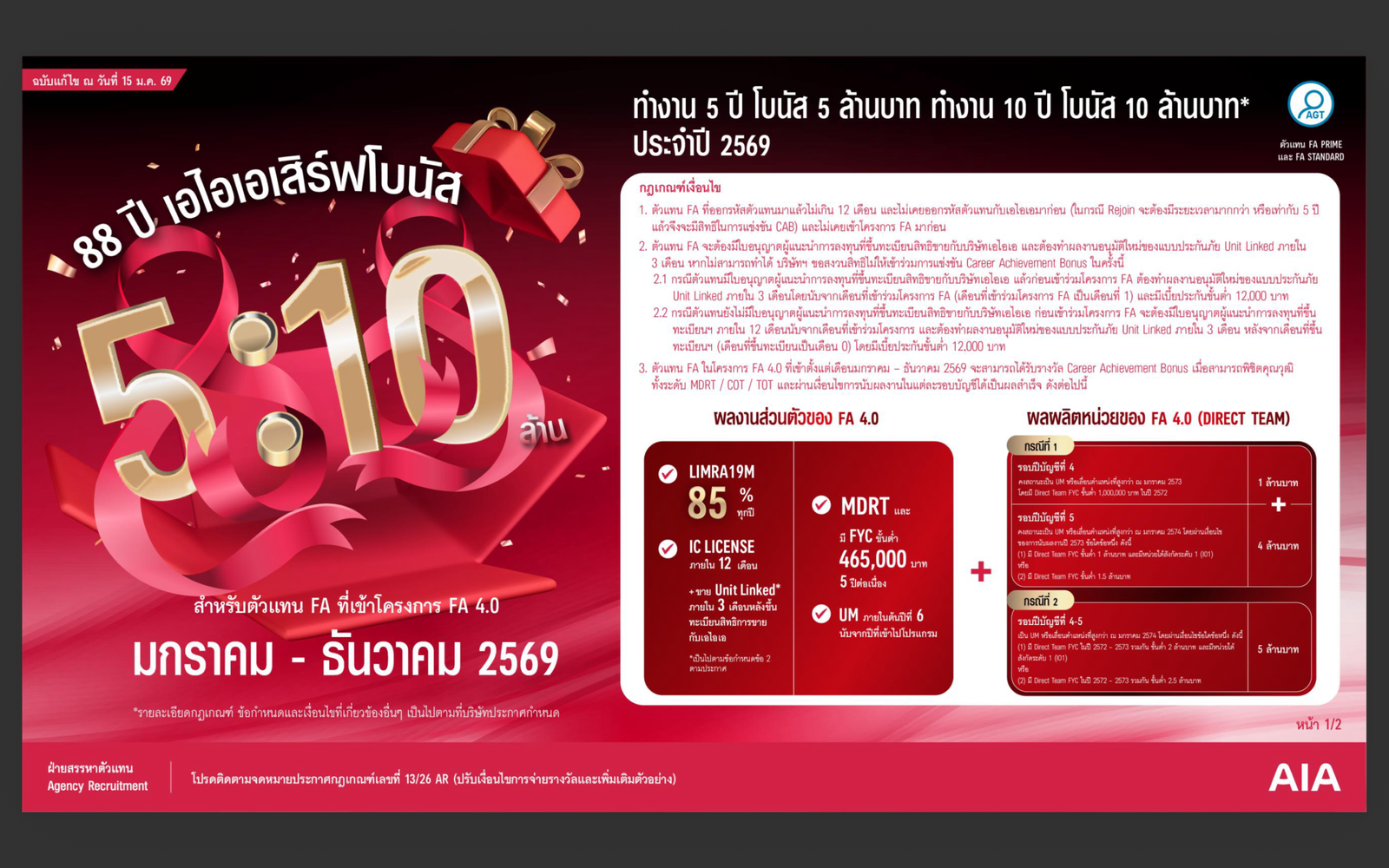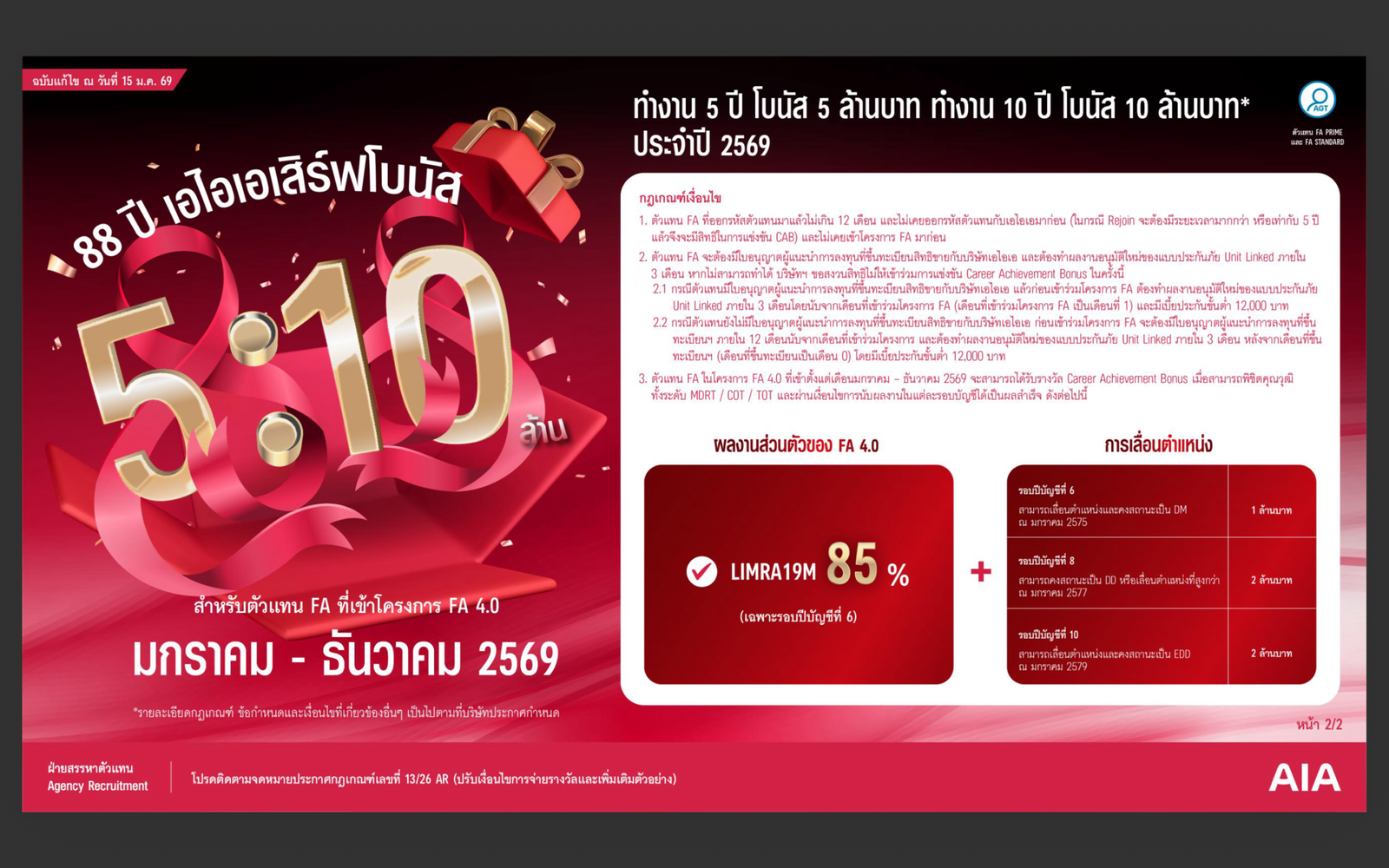 ในปี 2026 AIA จึงขยายโอกาสให้ยิ่งใหญ่กว่าเดิมด้วยโครงการ FA AIA โบนัส 10 ปี 10 ล้าน เพื่อสร้าง “ผู้นำองค์กร” ที่มีความเชี่ยวชาญด้านการวางแผนการเงินอย่างแท้จริงและมีความมั่นคงในระยะยาว